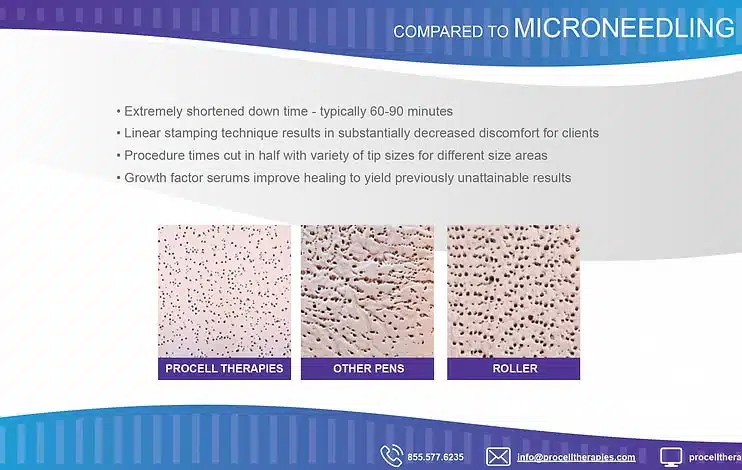 Procell stimulates more effectively with less damage than traditional micro needling pens or rollers. Stimulation not inflammation!